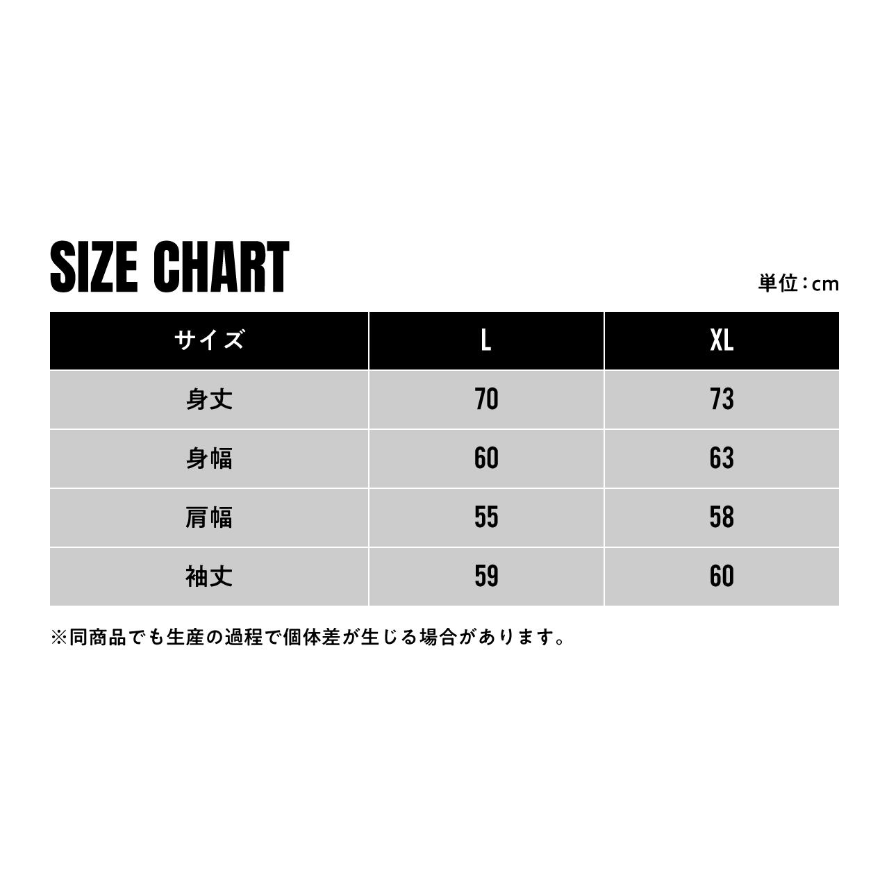 ・XLサイズ 身丈 : 73 身幅 : 63 肩幅 : 58 袖丈 : 60