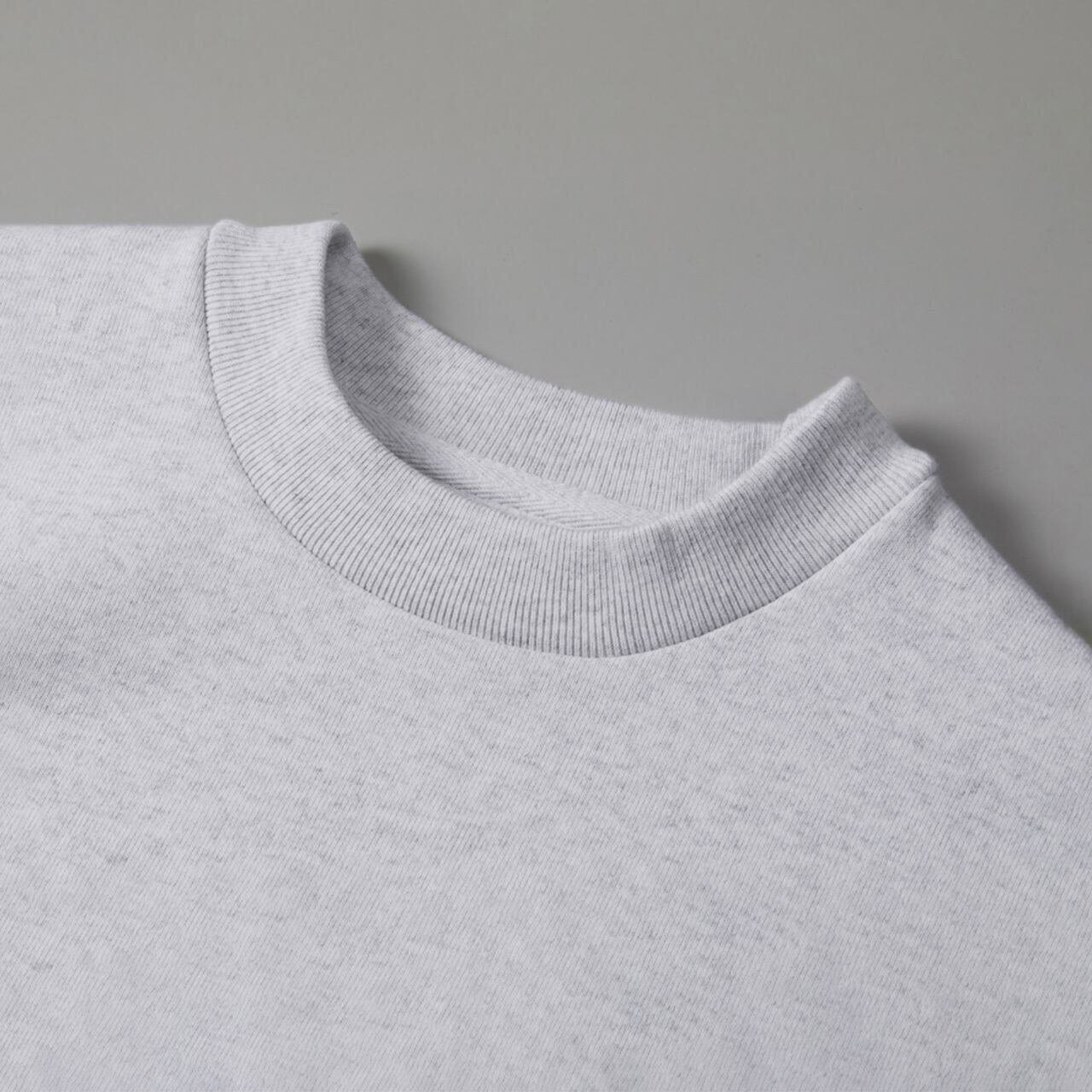 ・襟はリブ仕様、フロントはステッチを排したミニマルな縫製仕様、やや高めに仕立てられたネックラインが特長。